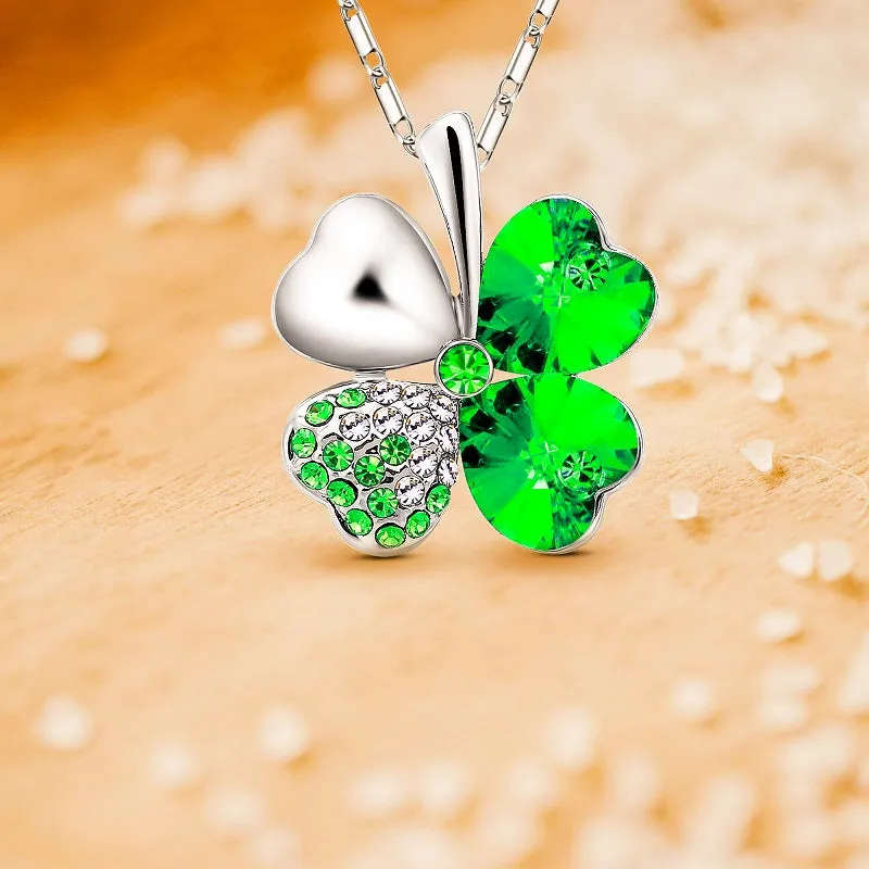 YOU WILL BE THE LUCKY ONE SOME DAY Four-Leaf Clover Crystal Necklace